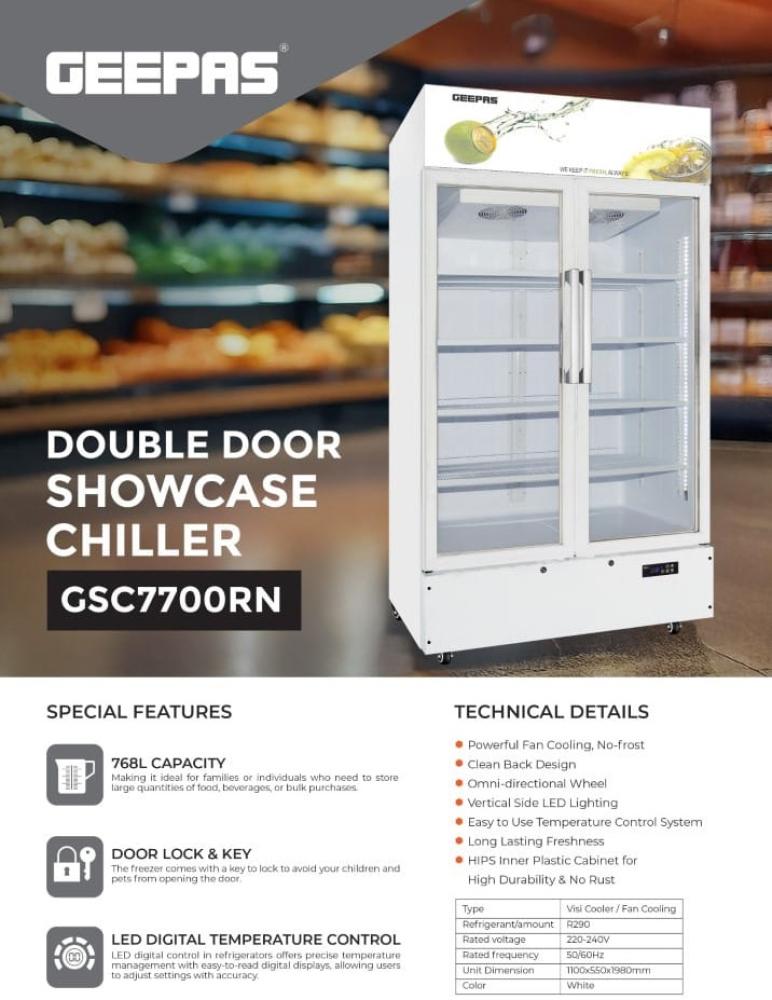 ثلاجة عرض جيباس 768 لتر بابين زجاج، ابيض