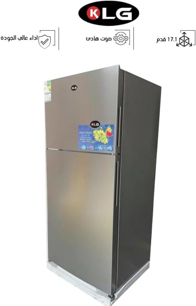 ثلاجة KLG بابين ،510 لتر، 17.1 قدم، بخار، ستيل