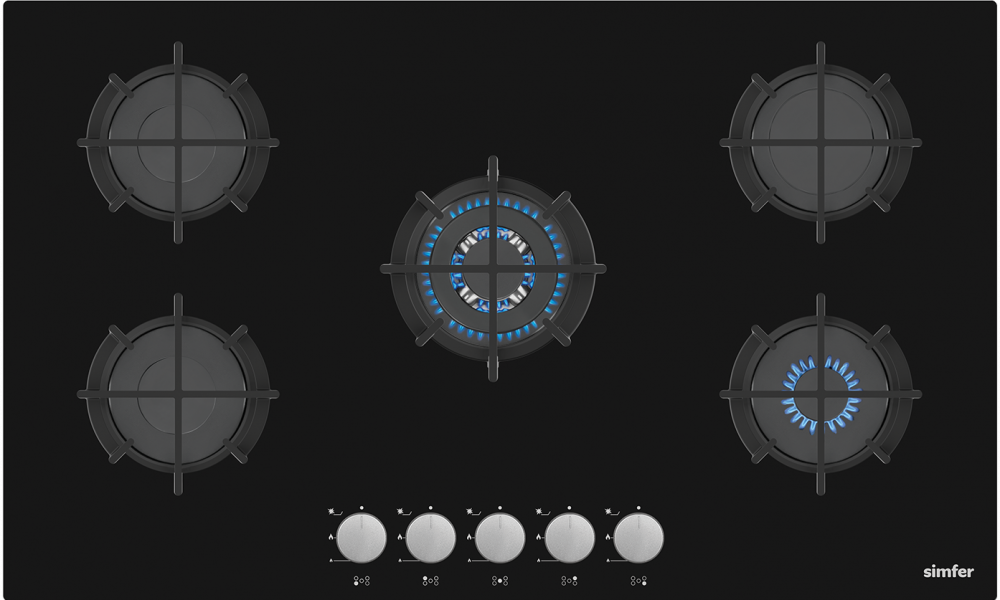 Simfer Built-in Gas Hob, 90 cm, 5 Burners, Auto Ignition